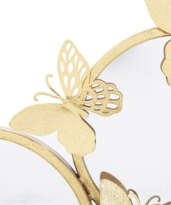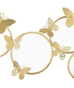 Pannello decorativo con specchi e farfalle in metallo dorato cm 89x4x45h