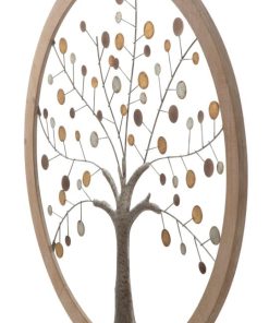 L’albero è realizzato in metallo con diverse finiture colorate, incorniciato da una cornicetta il legno naturale.