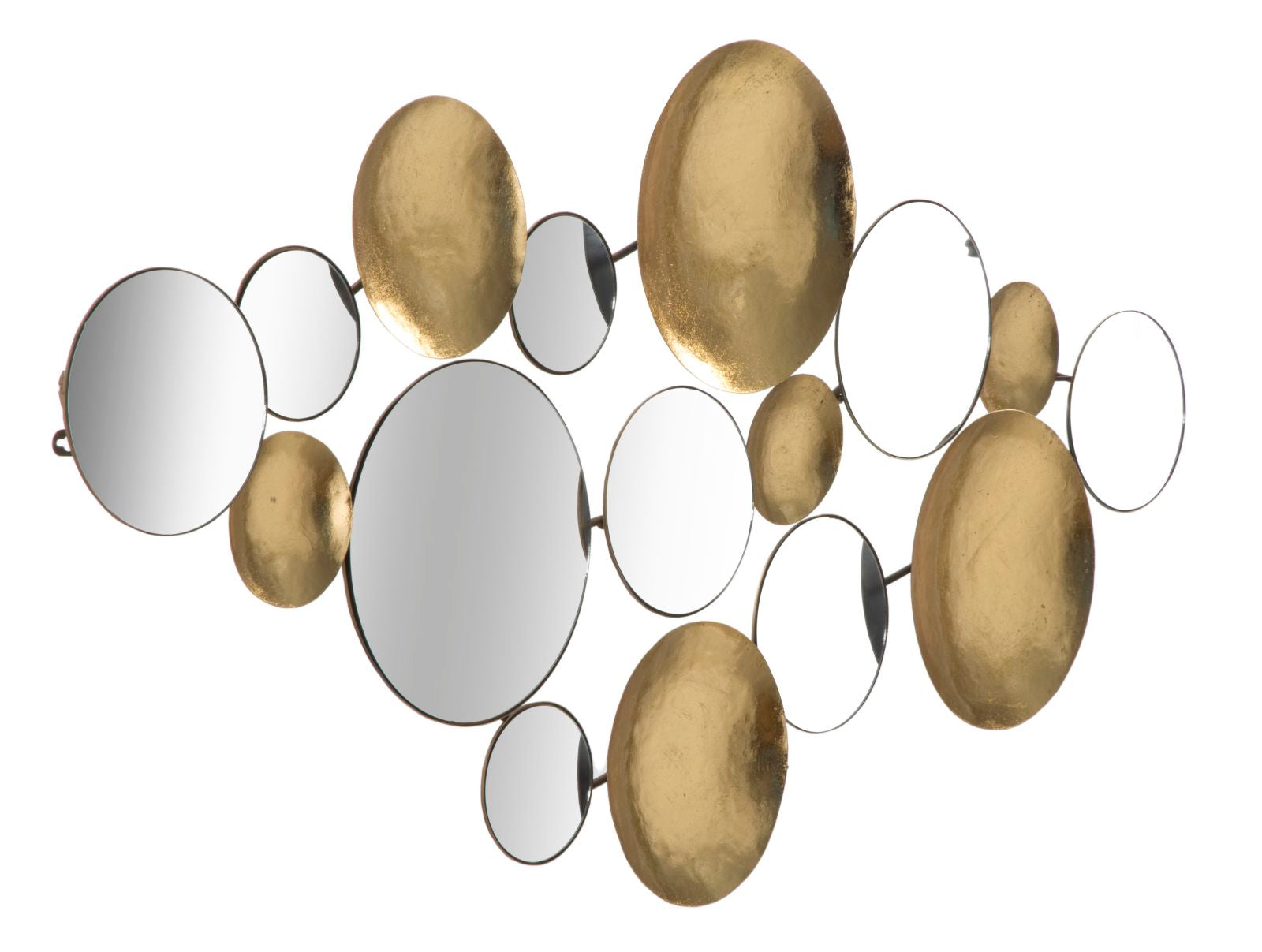Bellissimo e originale il nostro pannello decorativo, che funge da quadro ma anche da specchio per il tuo ingresso. Dotato di elementi circolari in metallo color oro che si alternano a graziosi piccoli specchi rotondi. Un nuovo modo di arredare qualsiasi ambiente.