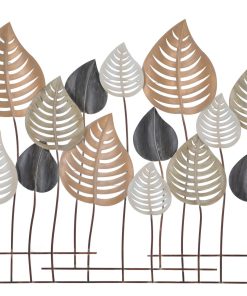 Pannello decorativo design riproducente una serie di foglie realizzate in metallo, sagomate con parti forate per realizzare una figura più realistica e intrigante, grazie anche all’effetto 3D. Inoltre, i colori tenuti permettono di adattare facilmente il pannello in qualsiasi contesto.