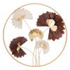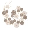 Decorazione da muro riproducente un raffinato albero fiorito in maniera minuziosa e fantasiosa. Il metallo sagomato fa emergere una ricca composizione di fiorellini lavorati e in 3D, realizzati con colorazioni diverse come grigio, bianco con spruzzi di rosso, accompagnato dall’immancabile colore oro per sottolineare l’eleganza dello stile.