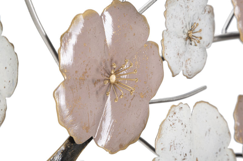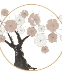Pannello decorativo da parete prodotto in metallo e riproducente un albero con tanti fiorellini che fuoriesce da un semplice cornicetta tonda. L’effetto 3D e i colori delicati, producono una decorazione adorabile e perfetta per esaltare contesti raffinati abbinando colori pastello.