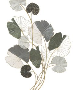 Pannello moderno composto da foglie di loto realizzate in metallo e in 3D, che decoreranno con delicatezza la parete di qualsiasi stanza.