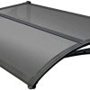 Pensilina da esterno per porte e finestre. La sruttura della pensilina si presenta in acciaio con colorazione nera, la copertura è realizzata attraverso del policarbonato alveolare dalla colorazione fumè. I supporti di installazione consentono di fissare la pensilina facilmente in modo da proteggere la zona interessata da schizzi, macchie ed eventuali sporcizie. L’articolo è disponibile in diverse misure.