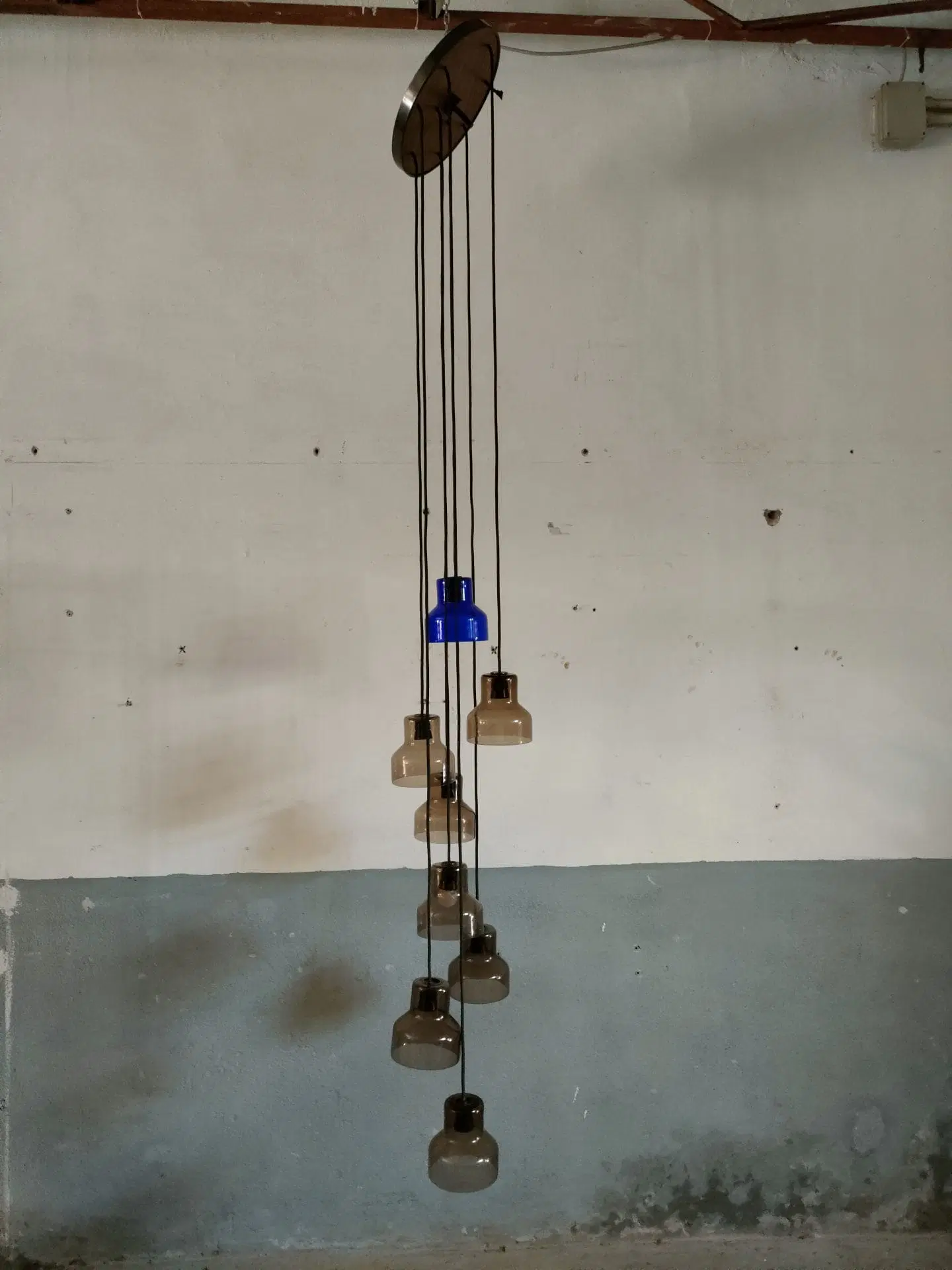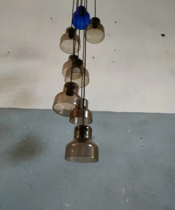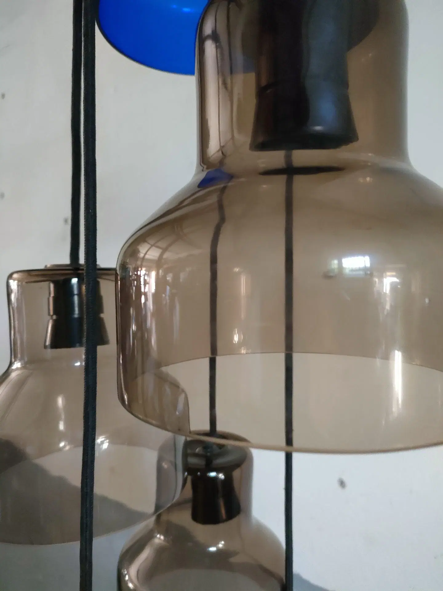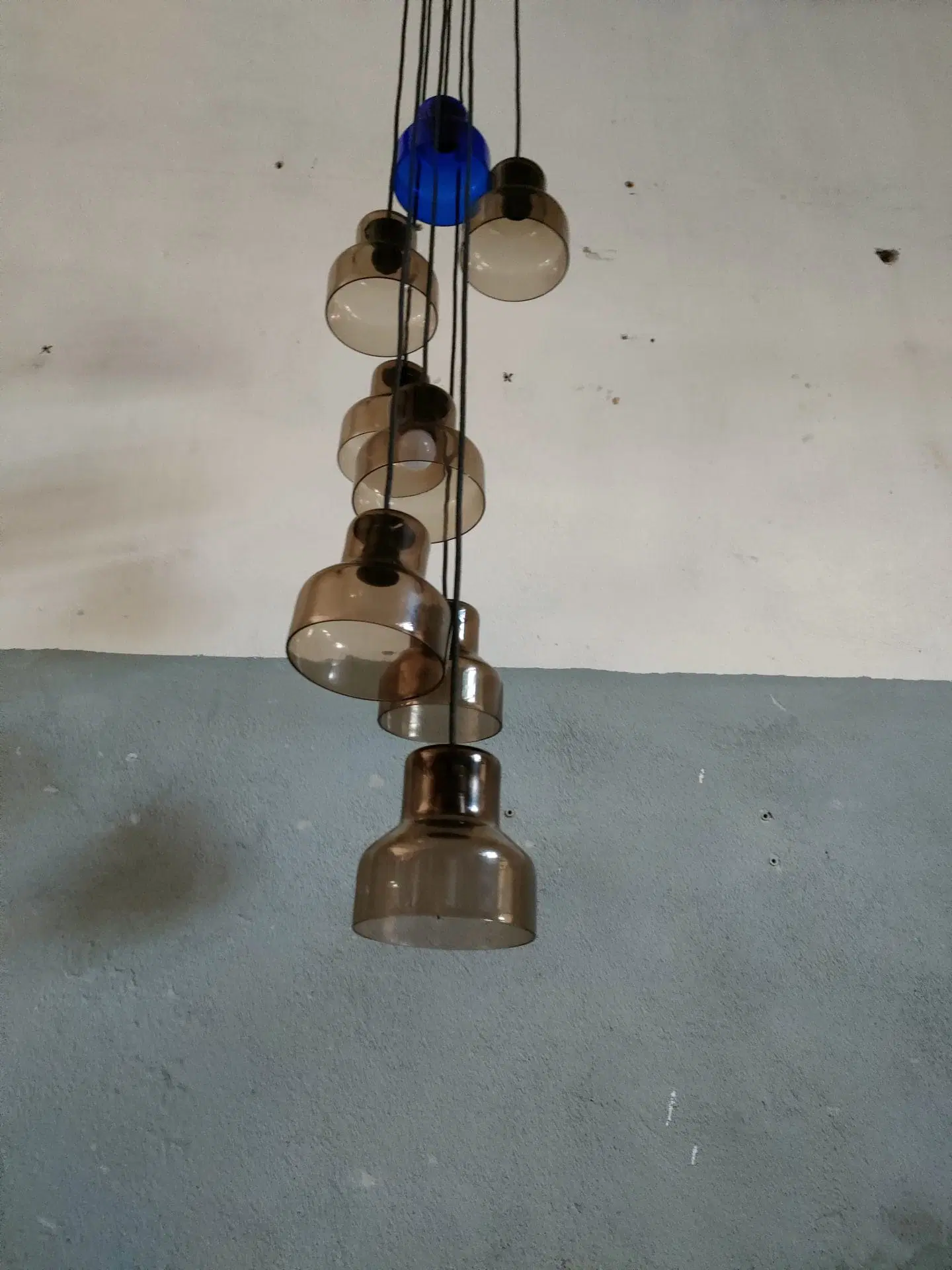 Altezza massima 240 centimetri, ottime condizioni generali vintage, coppe in vetro blu e fumè, sane e intatte.