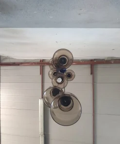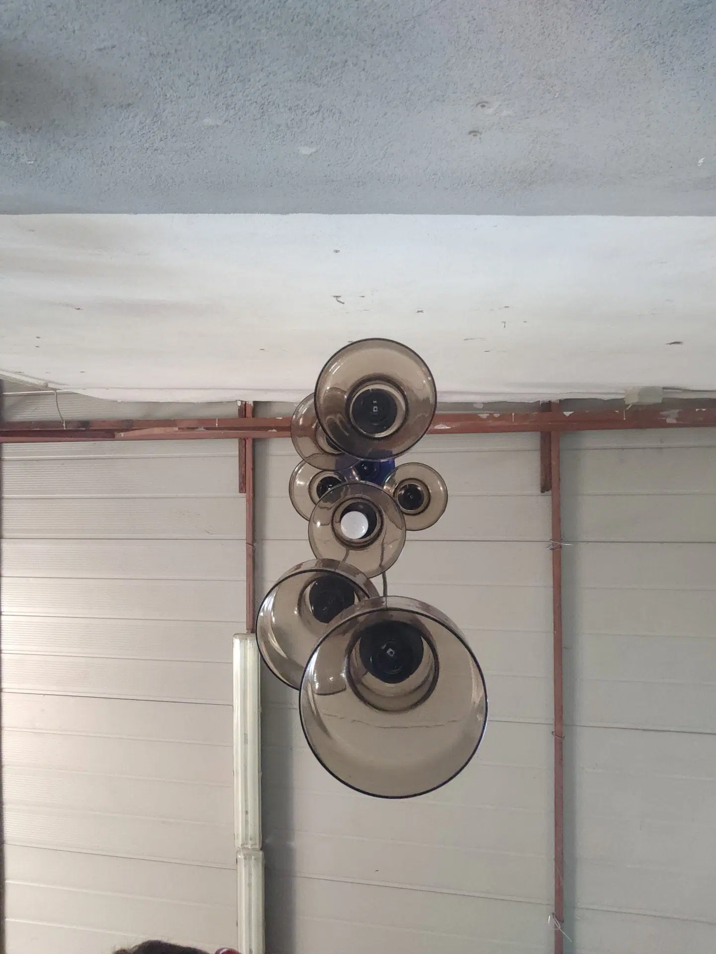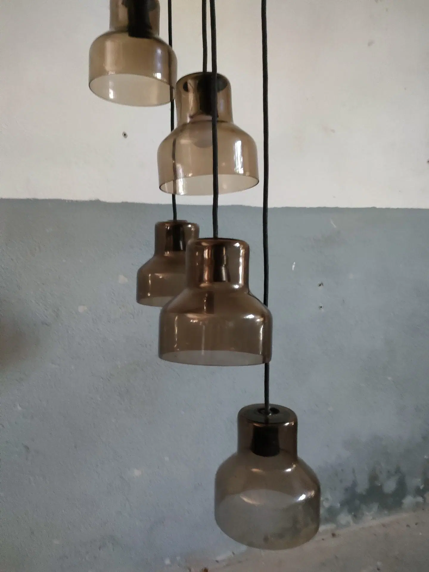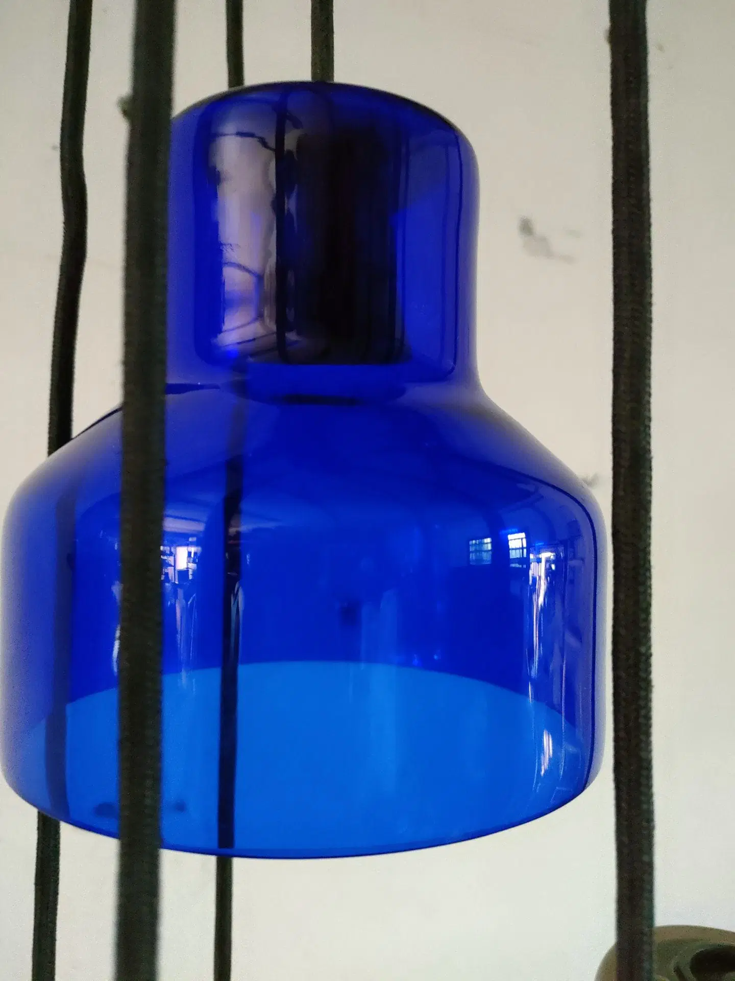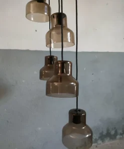 Altezza massima 240 centimetri, ottime condizioni generali vintage, coppe in vetro blu e fumè, sane e intatte.