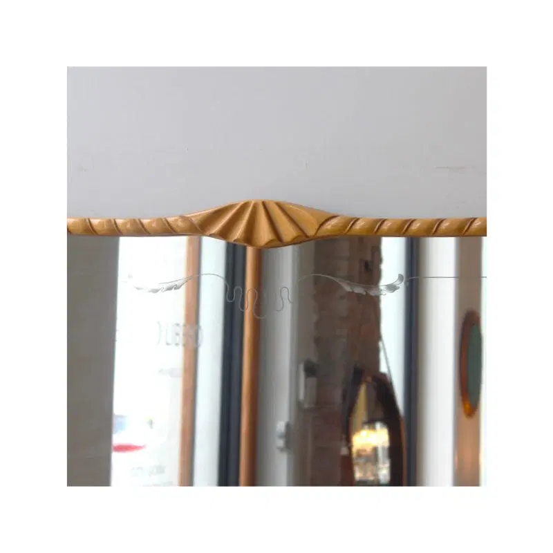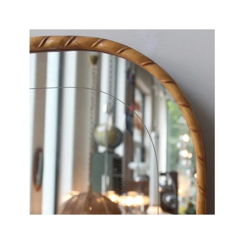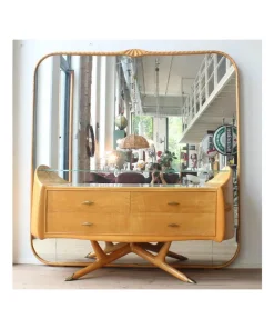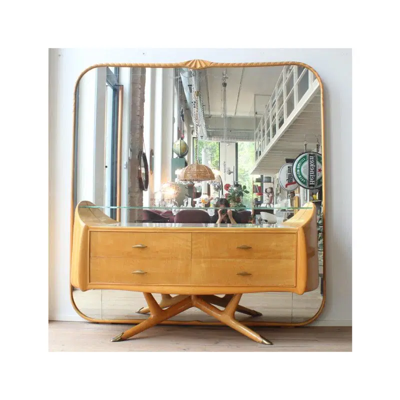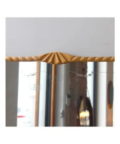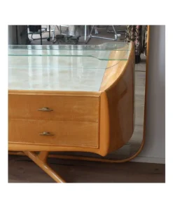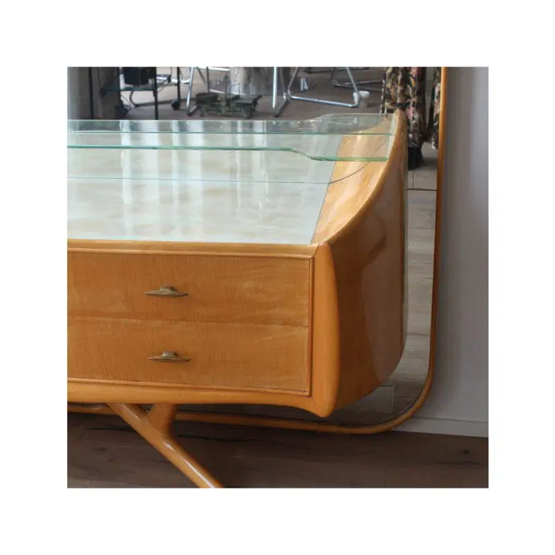 Elegante petineuse italiana degli anni ’50, caratterizzata da una maestosa specchiera con bordo sagomato che richiama la forma morbida di una conchiglia, dettaglio che le dona un’allure raffinata e senza tempo.