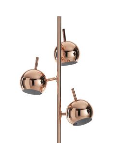 Piantana da terra con 3 coprilampada direzionabili ideale per illuminare un angolo del salotto o camera in stile moderno. La nostra lampada design piace per la struttura in metallo colore rame con la superficie a specchio riflettente.