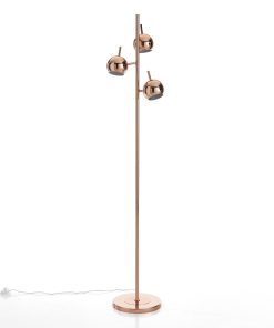 Piantana da terra con 3 coprilampada direzionabili ideale per illuminare un angolo del salotto o camera in stile moderno. La nostra lampada design piace per la struttura in metallo colore rame con la superficie a specchio riflettente.