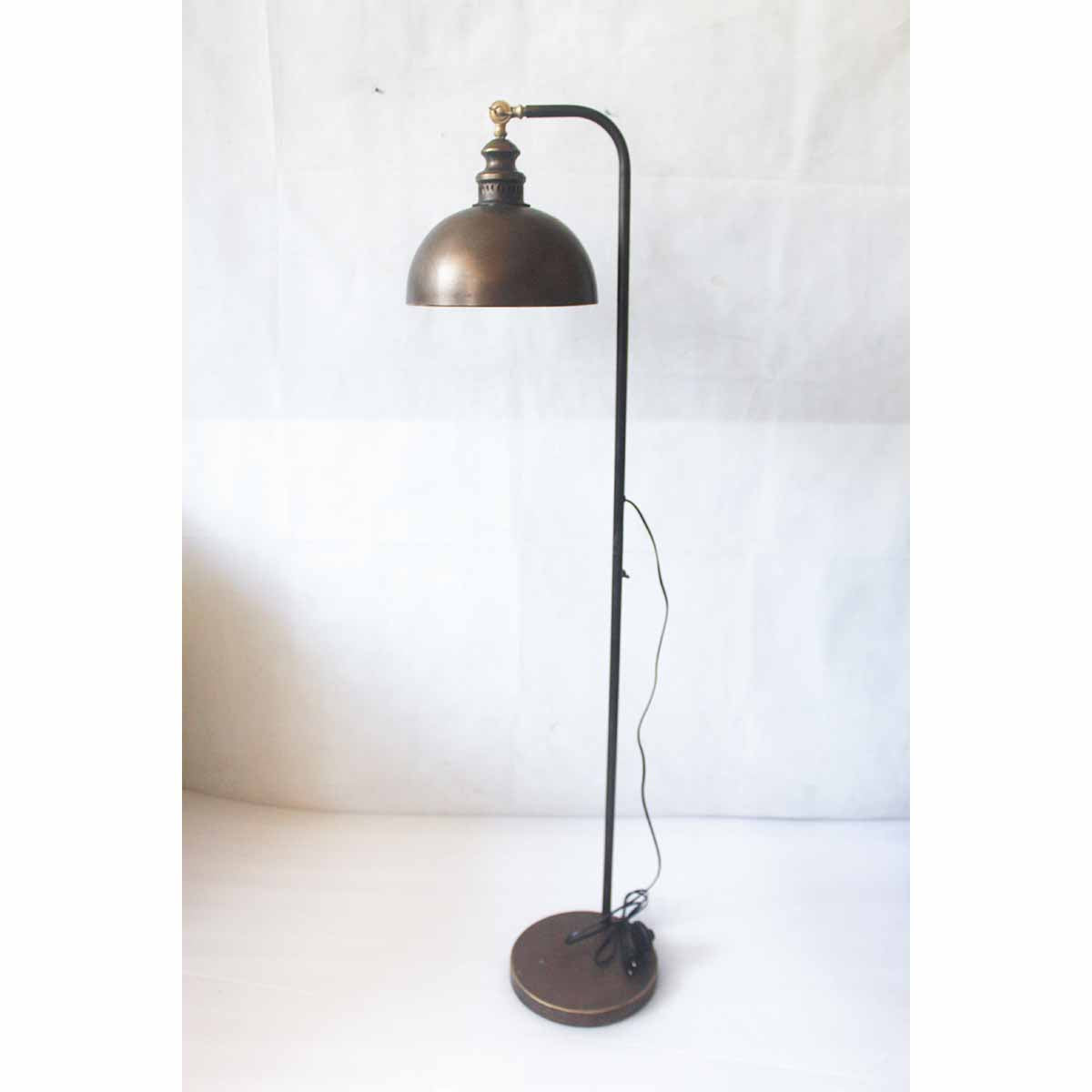 Lampada da terra in metallo anticato paralume a campana