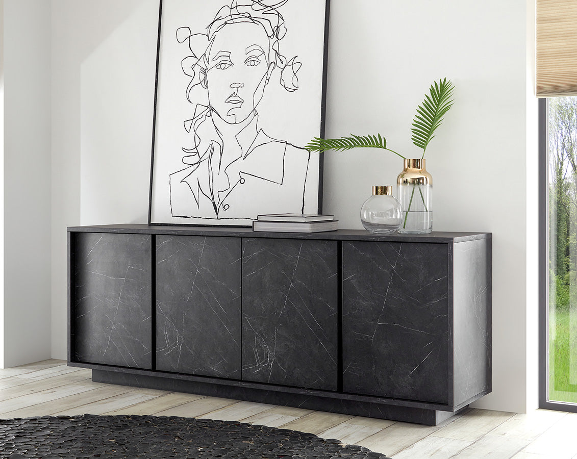 Per tutti coloro che amano l’eleganza del marmo, questo salotto completo Pisa è un’idea imperdibile. Infatti, il salotto moderno Pisa vanta una particolarissima finitura effetto marmo, affascinante sia nella versione nero che in quella bianca. Pisa si compone di mobile porta tv, ampia madia 4 ante e tavolino basso, tutto realizzato in legno.