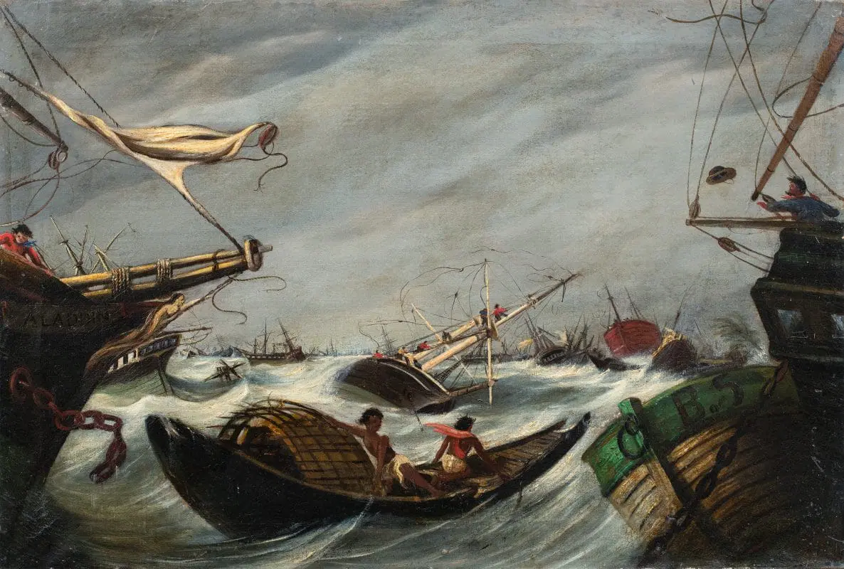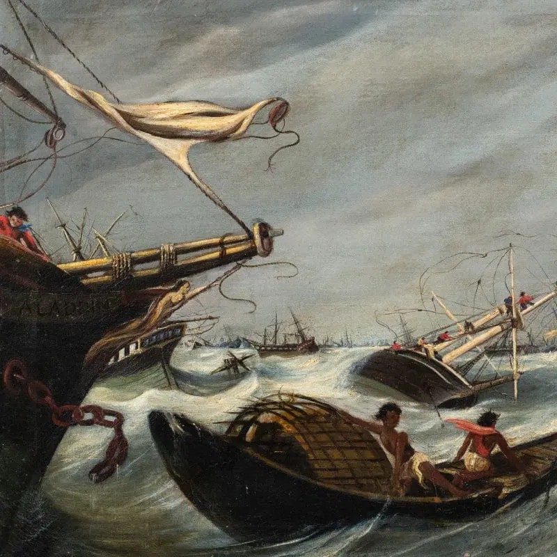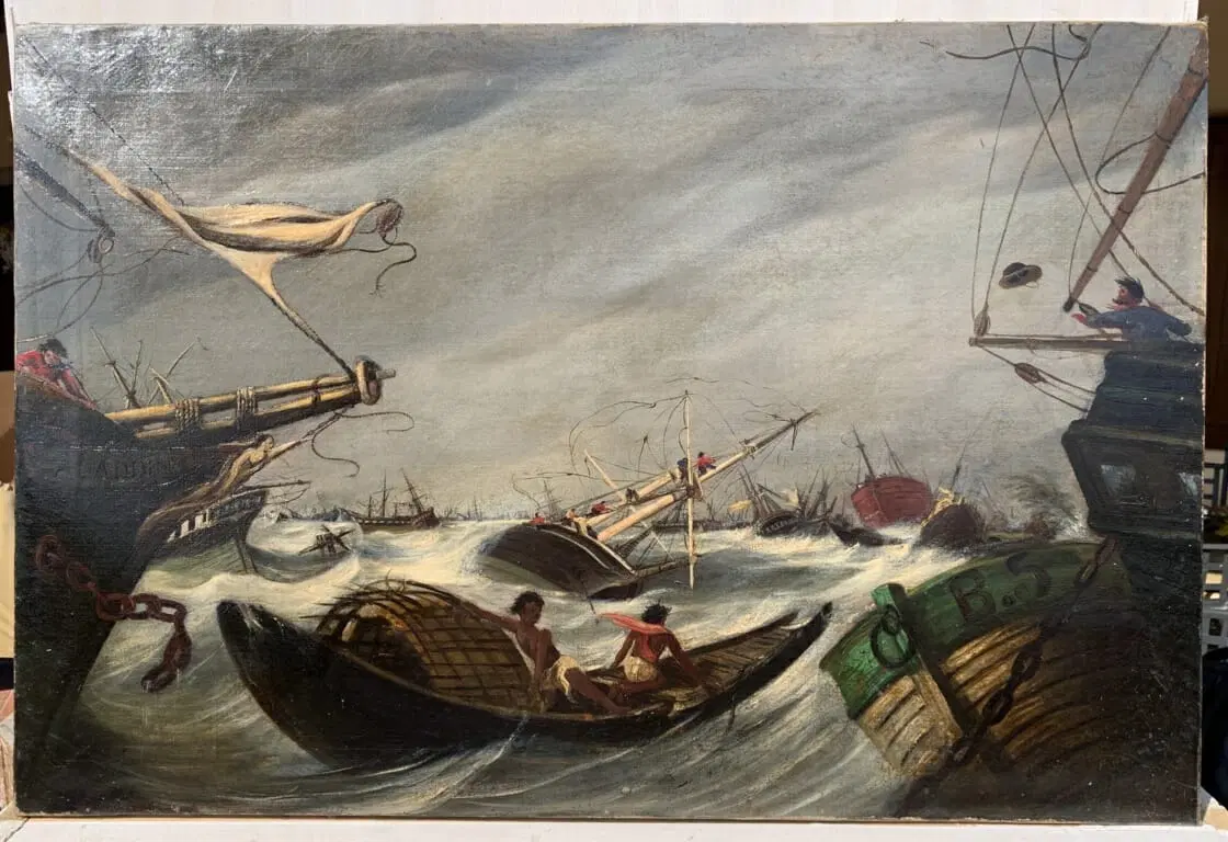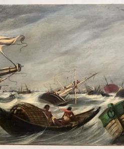 Pittore francese (fine XIX sec.) – Mare in tempesta.