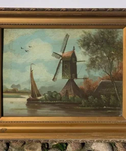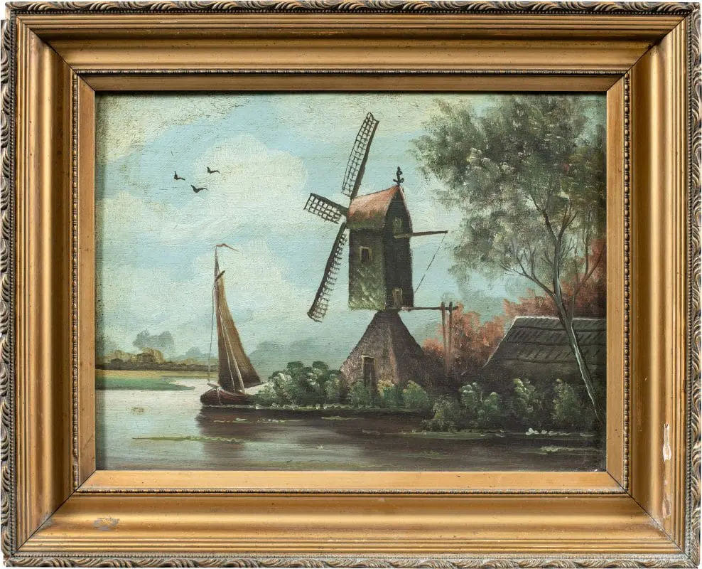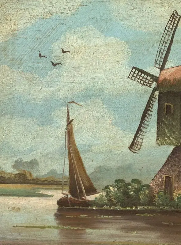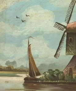 Pittore olandese (fine XIX sec.) – Paesaggio con mulino a vento.