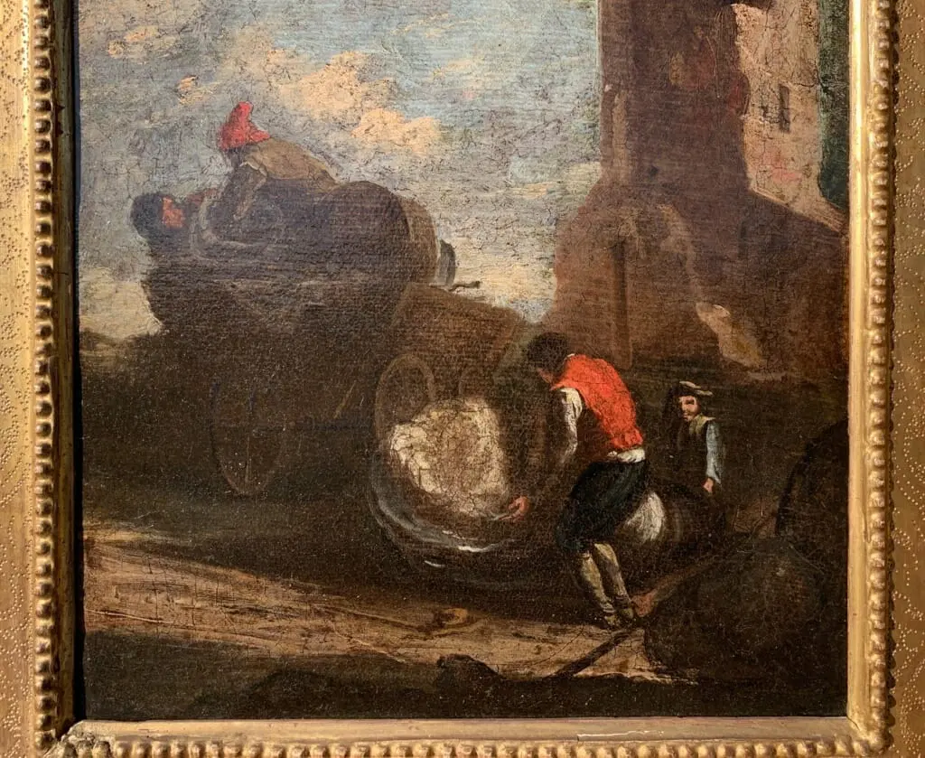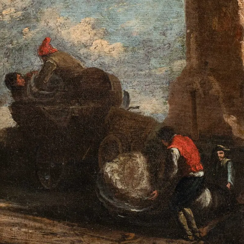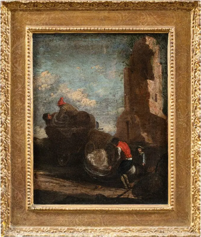 Pittore romano (XVIII sec.) – Paesaggio con viandanti.