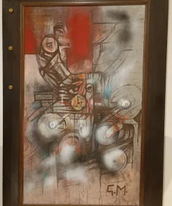 L’uso della tecnica mista dona alla composizione una texture vibrante e intensa, mentre i colori decisi e le linee audaci raccontano la potenza espressiva del periodo. Ogni pennellata trasmette emozione, richiamando la brutalità estetica tipica del movimento, e al tempo stesso rivelando una sensibilità profonda. Il contrasto tra le superfici grezze e la delicatezza cromatica crea un equilibrio sorprendente, capace di catturare lo sguardo e stimolare la riflessione.