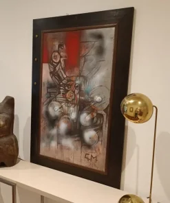 Questa straordinaria pittura brutalista anni ’60/70, realizzata con tecnica mista su tela, rappresenta un’autentica espressione di forza e dinamismo. Il movimento brutalista, noto per le sue forme audaci e la cruda sincerità dei materiali, trova in quest’opera una sintesi perfetta di energia e modernità. Le dimensioni di 120×80 cm, cornice lignea compresa, la rendono perfetta per diventare protagonista di qualsiasi spazio raffinato e contemporaneo. In eccellenti condizioni generali, è pronta per donare carattere e stile al tuo ambiente.