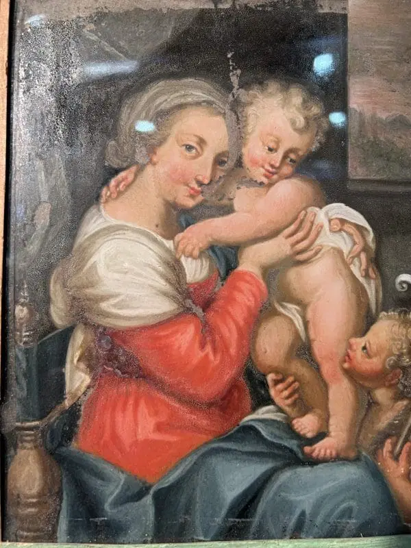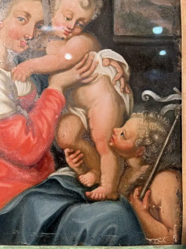 Pittura su vetro – Madonna con bambino. Italia settentrionale, primi del XVIII secolo.