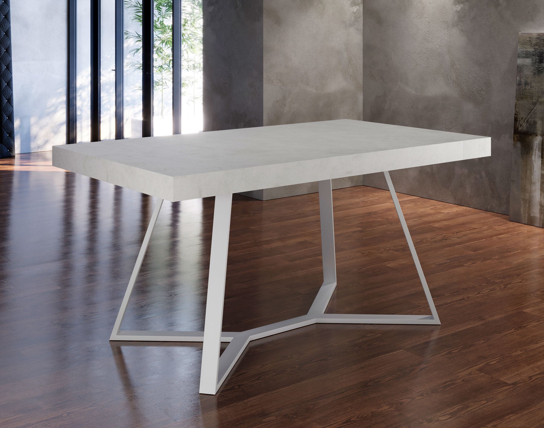Tavolo moderno allungabile Plinter composto da struttura in metallo e piano in legno, un ottimo suggerimento per chi cerca un tavolo unico collocabile nell’arredamento industrial ma non solo. Il piano è realizzato in legno con lavorazione a folding con tante finiture a scelta tra finiture classiche o cemento.