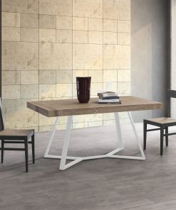 Tavolo allungabile Plinter realizzato in metallo e legno, interessante e originale, soprattutto per chi ama l’arredamento industrial, che impiega questi due materiali in modo creativo. La particolarissima struttura in metallo rappresenta l’elemento distintivo e offre una stabilità assoluta, anche quando il tavolo è allungato.
