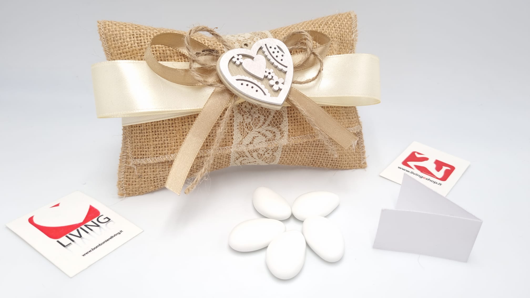 Il prezzo iniziale corrisponde al sacchetto vuoto per il fai da te, se si sceglie l’opzione bomboniera confezionata, il sacchetto arriverà con 5 confetti a scelta, bigliettino personalizzabile con nome/tipo di evento/data e nastrino.