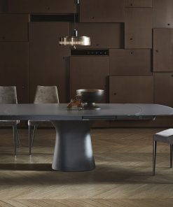Tavolo moderno Podium Bontempi ovale realizzato anche in una versione allungabile, per consentire di avere un tavolo dal design apprezzato per l’unicità e che sia funzionale, infatti si estende da cm 170 a cm 250 tramite due allunghe laterali con meccanismo di apertura telescopico sincronizzato.