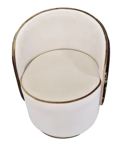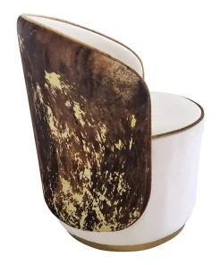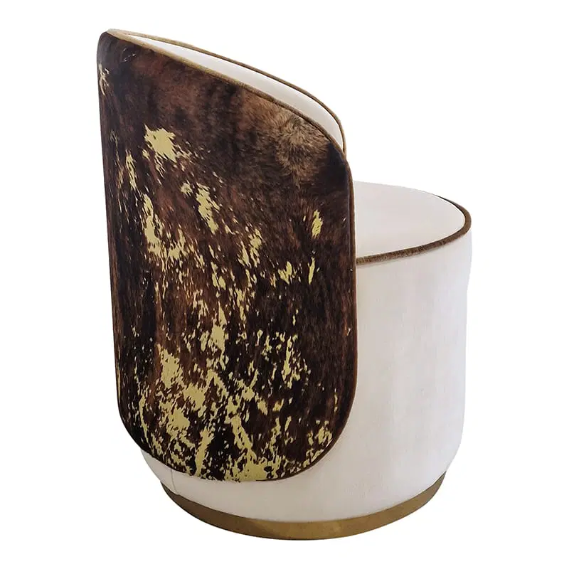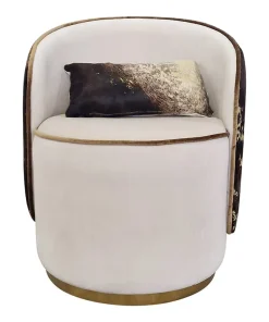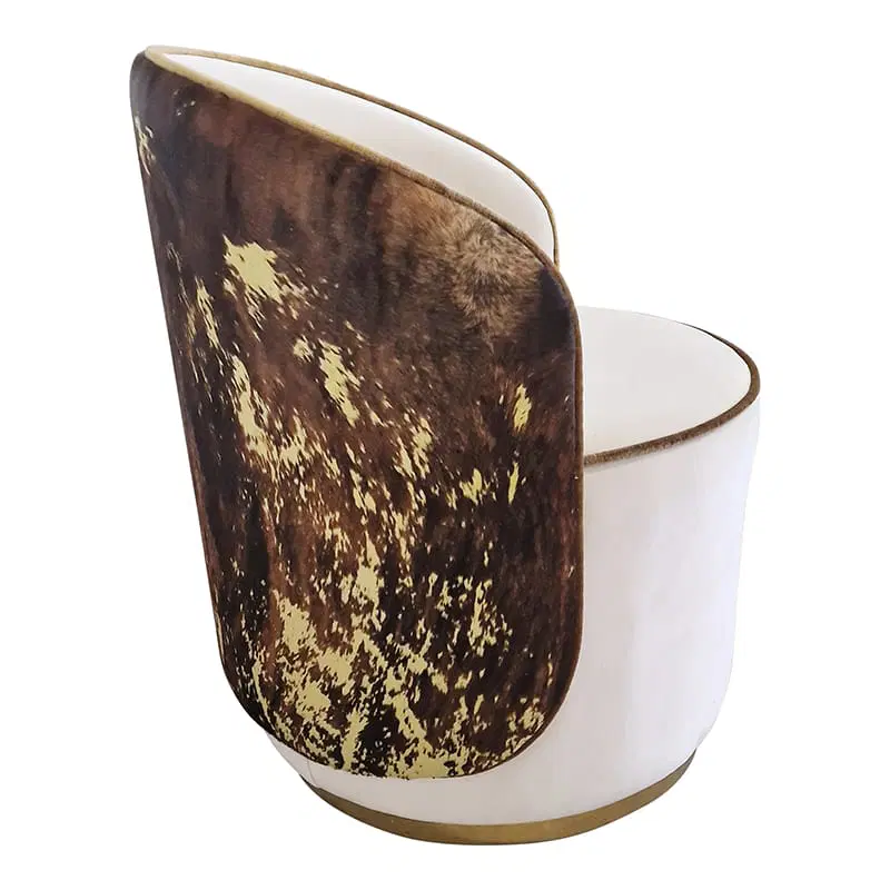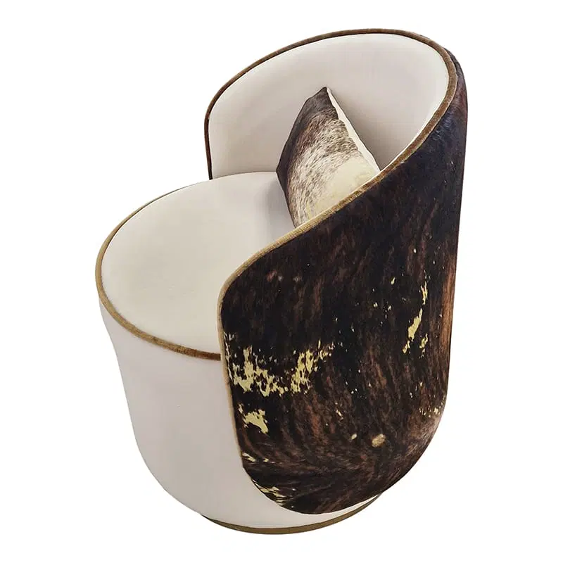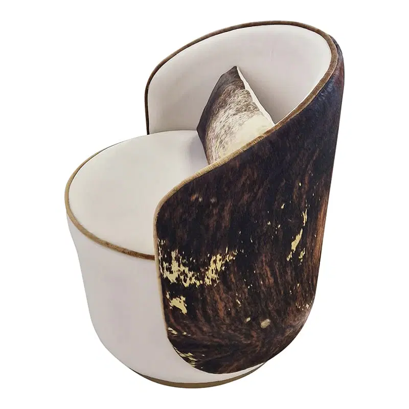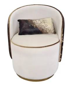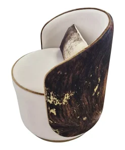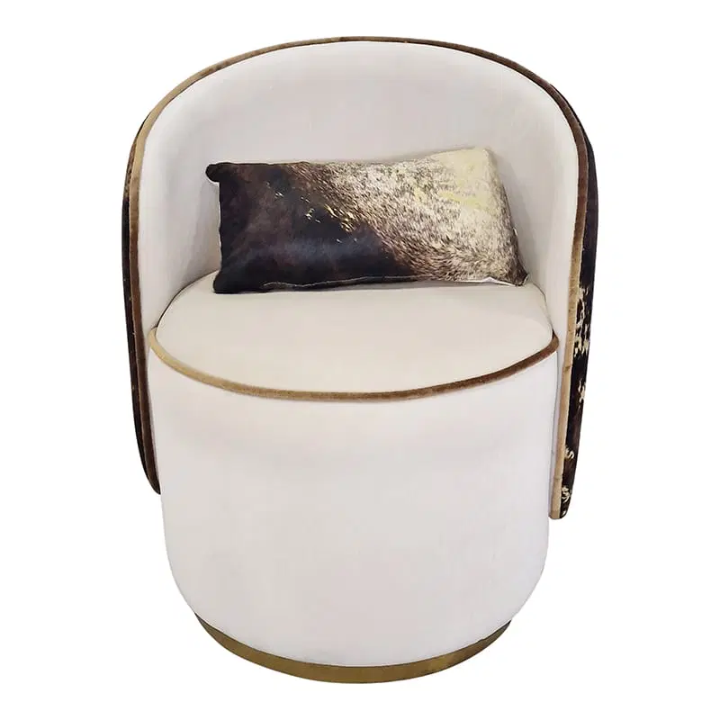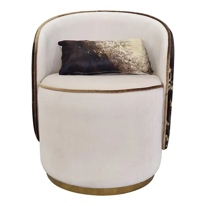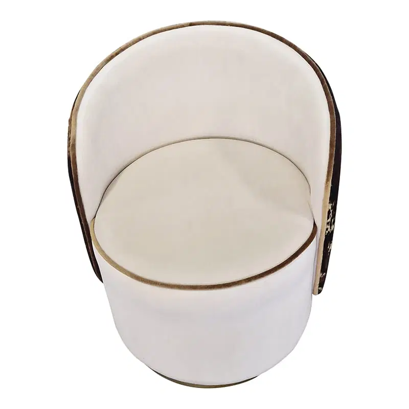 Poltrona a pozzetto in velluto bianco e retro in cavallino con cuscino abbinato