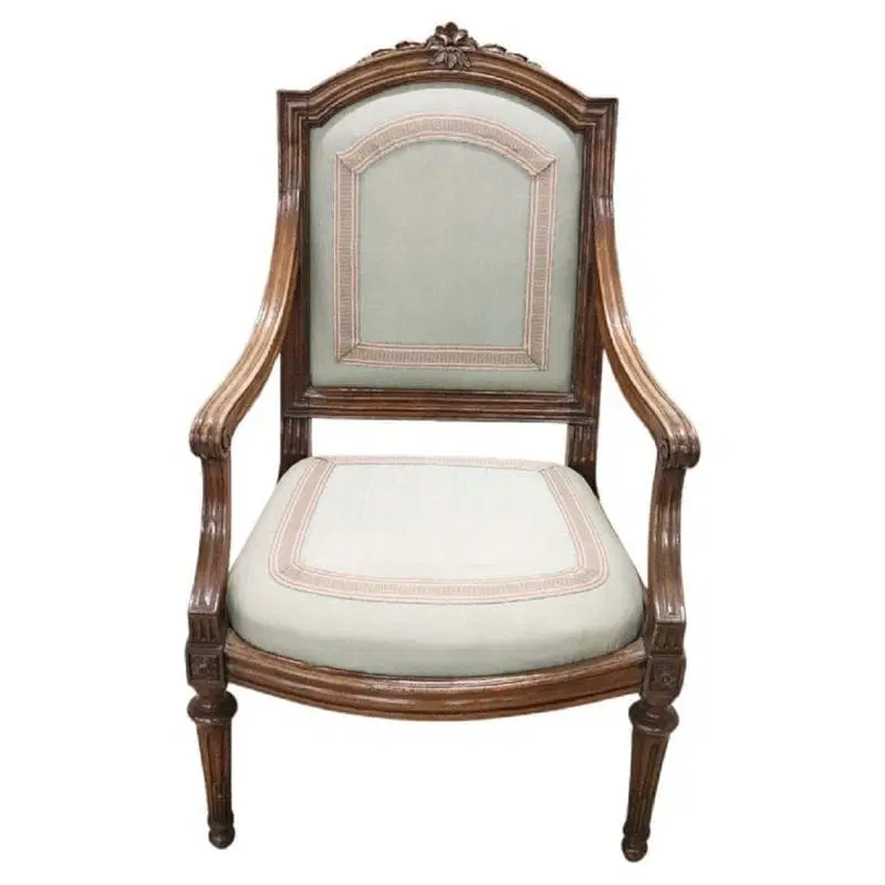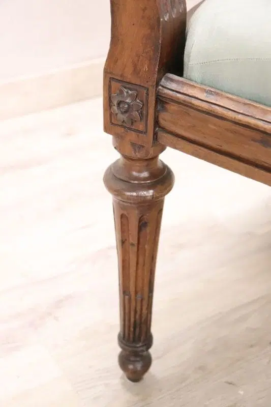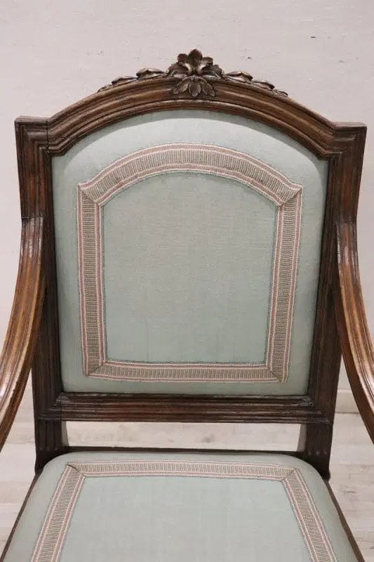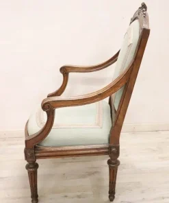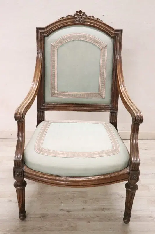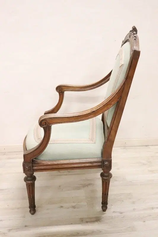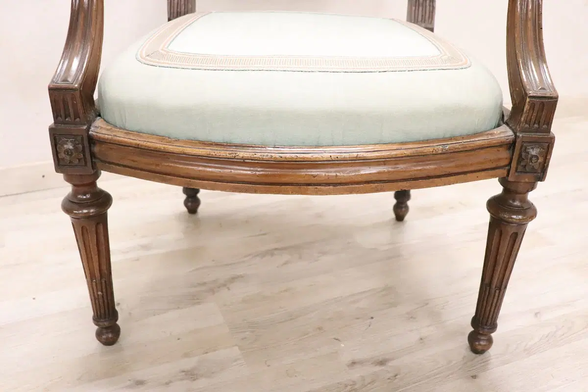 Bella poltrona antica italiana del XVIII secolo periodo Luigi XVI in legno di noce massello. Un’imponente poltrona di grandi dimensioni ampia e comoda con seduta e schienale imbottiti. Molto lineare, caratterizzata da piccole e raffinate decorazioni intagliate nel legno. In perfette condizioni di legno, imbottitura e tessuto. Perfetta per essere utilizzata come poltrona da scrivania. La poltrona è in perfette condizioni d’epoca, pronta per essere utilizzata nella vostra casa. prezzo trattabile vi invitiamo ad inviarci le vostre proposte di acquisto le valuteremo con piacere.