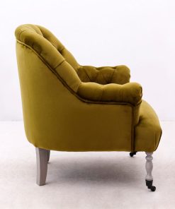 Fantastica poltrona da camera, realizzata in velluto con capitonné, sostenuta da 4 gambe in legno massello, di cui le due frontali con ruote. Perfetta da collocare in salotto o soggiorno, grazie ai suoi colori sgargianti a scelta tra arancio o verde, donerà un look moderno nella classicità della poltrona. Con una comoda imbottitura, è la poltrona ideale per piacevoli ore di relax.