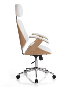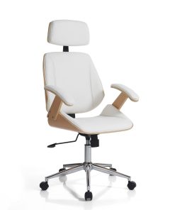 Poltrona da ufficio in legno multistrato e similpelle bianco cm 62x65x118/128h