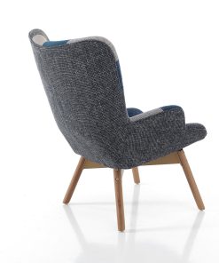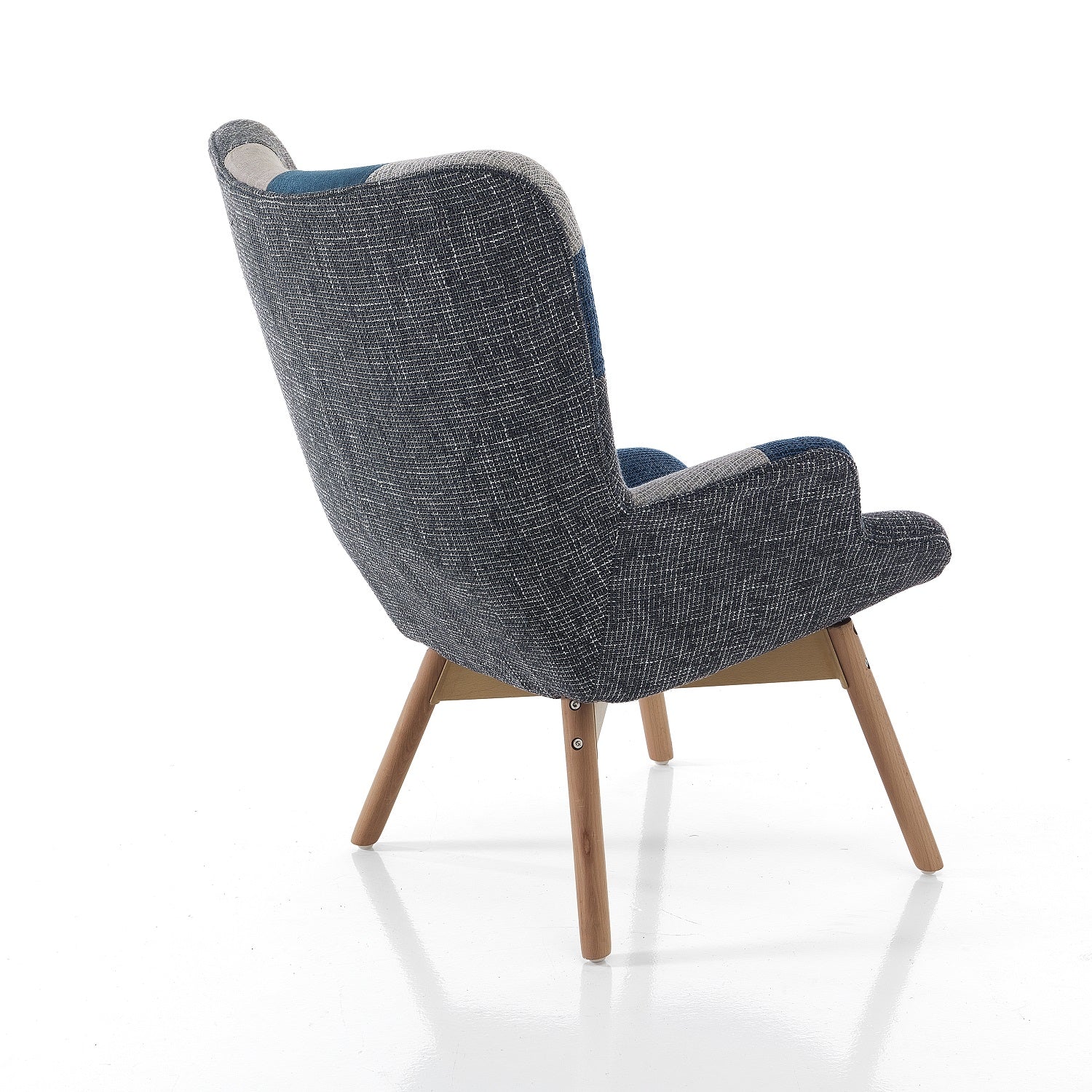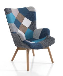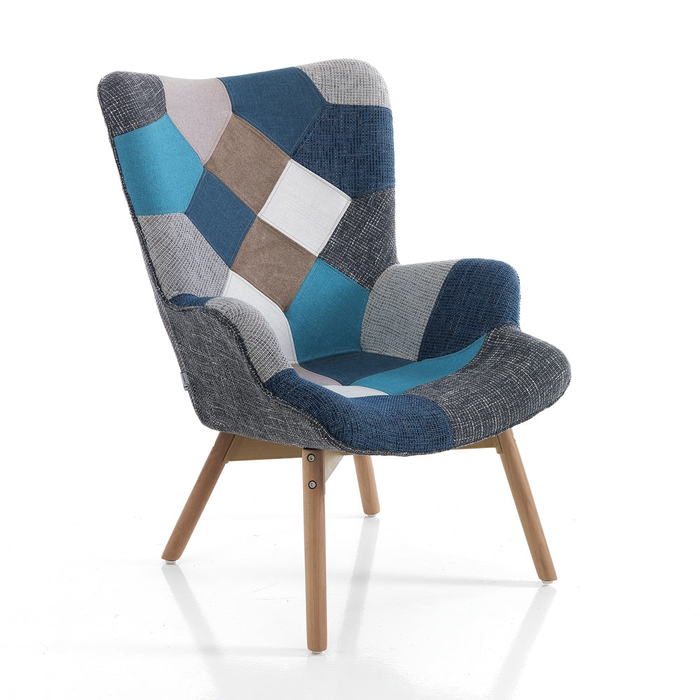 Poltrona living in tessuto patchwork gambe in legno massello rovere cm 67x78x94h