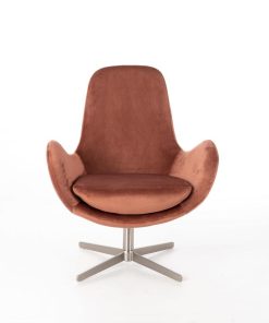 Poltrona definita da un design spiccatamente moderno, perfetta per un salotto contemporaneo. Questa poltrona moderna è disegnata da forme che creano una seduta avvolgente con schienale alto e braccioli, imbottita e rivestita in elegante velluto, disponibile in due colori. Inoltre, la base ampia in metallo cromato e girevole, dona il tocco finale ad un design innovativo.