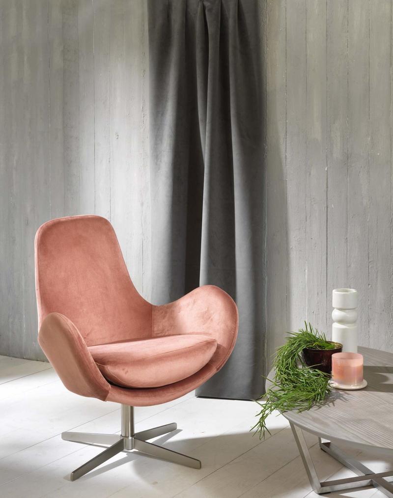 Bellissima poltrona design con base in metallo e girevole, ideale per chi ama un arredamento contemporaneo. Il rivestimento si presenta in morbido velluto, in due colori a scelta.