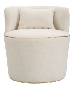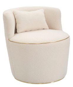 Arricchita da inserti dorati, la nostra poltrona si contraddistingue per la lavorazione tipo bouclè del tessuto che la riveste, che genera una superficie morbida al tatto. Ideale per donare un look delicato e raffinato al tuo ambiente.