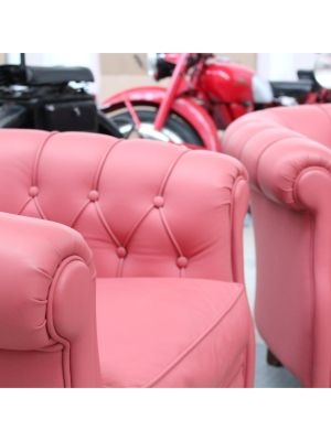 Modello: Chester Club / Impossibile non notarle: queste due poltroncine Chester Club in versione rosa shocking sembrano uscite da un sogno pop anni Duemila. Con la loro linea ispirata al classico Chesterfield inglese, reinterpretano leleganza daltri tempi in chiave ironica e contemporanea, senza perdere nulla del loro spirito vintage.