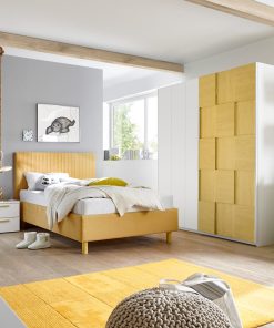 Composizione per cameretta singola Popart, con letto singolo una piazza e mezza, comodino e armadio con 2 ante scorrevoli, una soluzione funzionale, pronta all’uso e che colora la stanza dei vostri bambini. Popart comprende l’armadio moderno Brizio con la sua accattivante anta ad effetto scacchiera, comodino due cassetti e letto con testiera alta caratterizzata dalle cuciture verticali del rivestimento. Potrai scegliere il colore tra bianco opaco, blu e grigio artico.