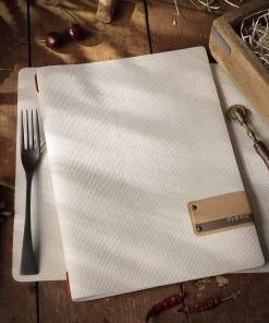 Personalizzazione omaggio sopra ai 18 pezzi! Premi “Sconti per grandi ordini! Clicca qui.” e compila il form per maggiori informazioni! Il porta menu Juta Avorio Etichetta Patch A4, proposto da DAGSTYLE nella sua innovativa linea JUTA, è l’alleato ideale per i professionisti dell’ospitalità che desiderano unire eleganza e funzionalità in un unico strumento. Realizzato in PVC antibatterico con un generoso spessore di 2,5 mm, si distingue per la sua superficie materica che evoca la naturalezza della juta, garantendo al contempo una resistenza eccezionale all’usura e una protezione antimacchia certificata. Queste caratteristiche lo rendono perfetto per un impiego intensivo negli ambienti più dinamici. L’etichetta PATCH, sapientemente realizzata in fibra di cellulosa e fissata con raffinati rivetti, aggiunge un tocco distintivo, offrendo un’ulteriore possibilità di personalizzazione per il vostro locale. Internamente, un pratico elastico è progettato per accogliere con ordine buste, cornicette, fogli piegati o listelli bind, tutti accessori che possono essere acquistati separatamente per adattarsi a ogni specifica esigenza di presentazione del menu. La manutenzione è estremamente agevole: una semplice pulizia con acqua e sapone sgrassante è sufficiente per mantenerlo impeccabile, e per le macchie più ostinate, una spazzola morbida risolverà il problema senza difficoltà. Con un design studiato per le reali necessità del settore, questo porta menu è una scelta eccellente per chi cerca un prodotto duraturo, versatile e di grande impatto.Per utilizzare il menù è necessario acquistare le buste di ricambio A4 opache (art. 107481) o trasparenti (art. 107480).