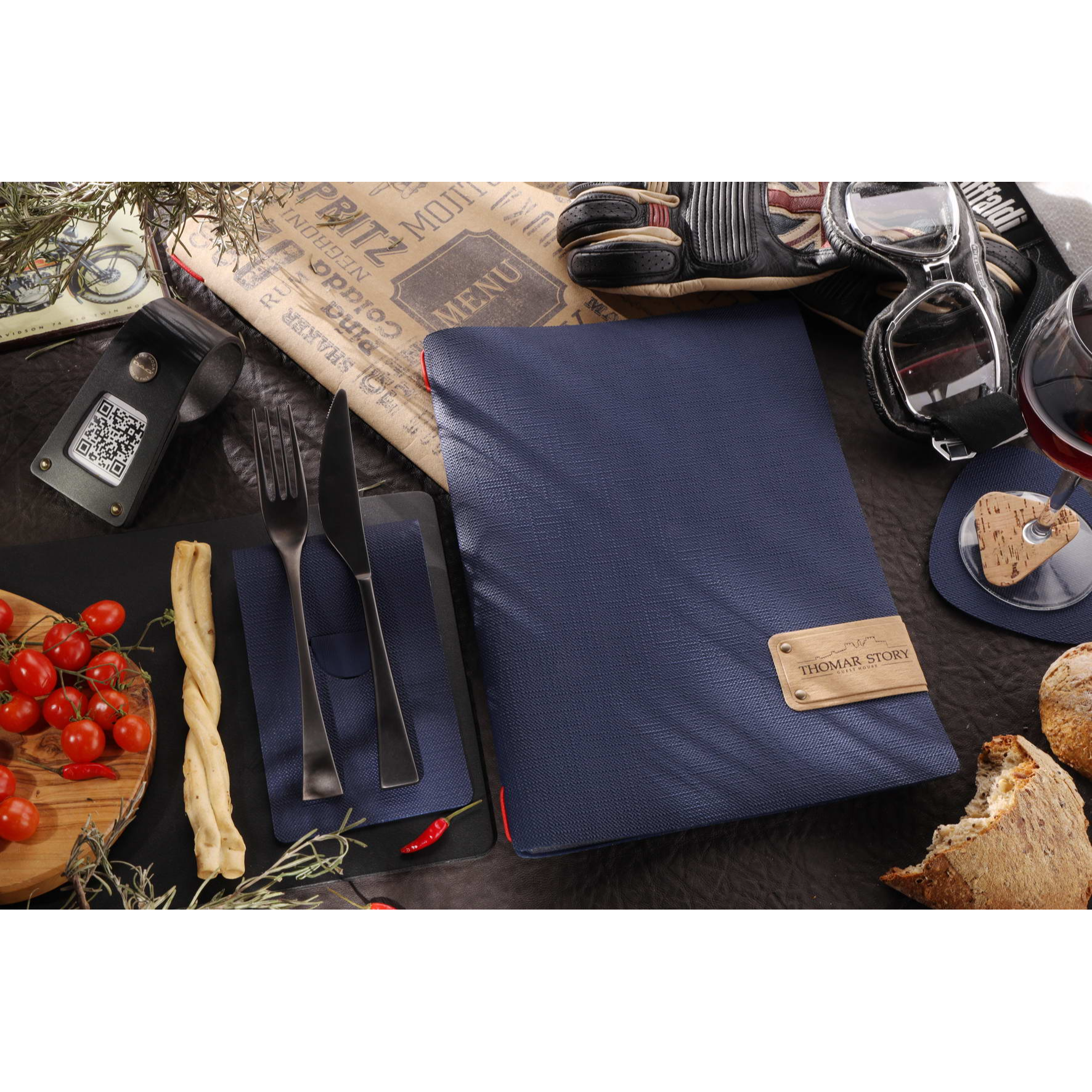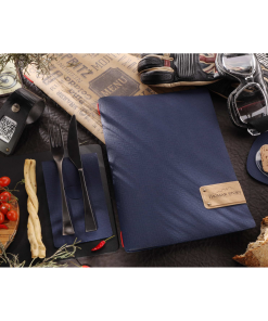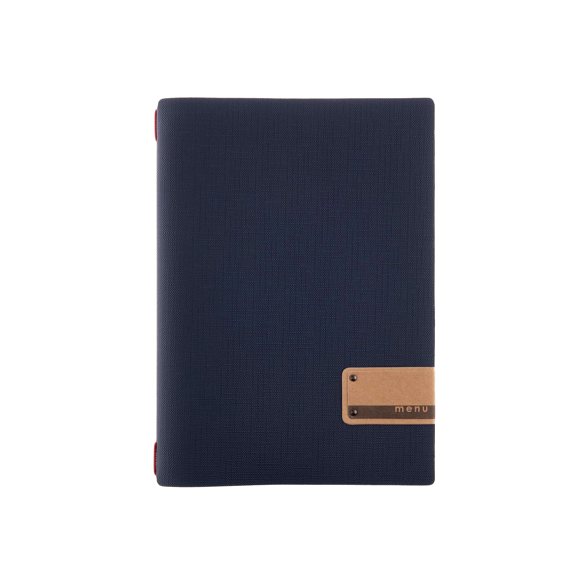 Porta menu juta blu etichetta patch a4 solo elastico