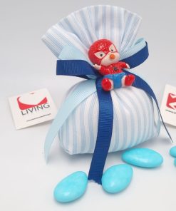 Il prezzo iniziale corrisponde al sacchetto vuoto per il fai da te, se si sceglie l’opzione bomboniera confezionata, il sacchetto arriverà con 5 confetti a scelta, bigliettino personalizzabile con nome/tipo di evento/data e nastrino.