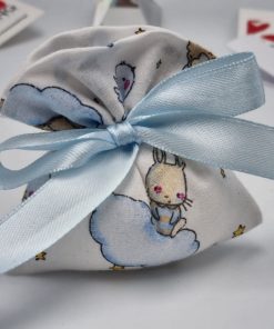 Il prezzo iniziale corrisponde al sacchetto vuoto per il fai da te, se si sceglie l’opzione bomboniera confezionata, il sacchetto arriverà con 5 confetti a scelta, bigliettino personalizzabile con nome/tipo di evento/data e nastrino.
