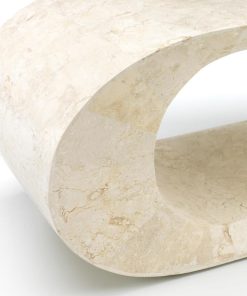 Tavolino basso da impiegare come porta tv, un complemento altamente pregevole sotto ogni punto di vista, per il design elegante e contemporaneo, caratterizzato da forme tonde e morbide, e per i materiale con il quale è stato realizzato. Infatti, questo mobile basso vanta una lavorazione artigianale, minuziosa, paziente, fatta da artigiani esperti, e materiali pregiati: la solida struttura è realizzata in compensato marino e resina, su cui è applicato uno speciale rivestimento in tessere di pietre fossili, si tratta di una pietra millenaria, tagliata a mano in piccole tessere per poi essere applicate una alla volta come un mosaico.