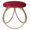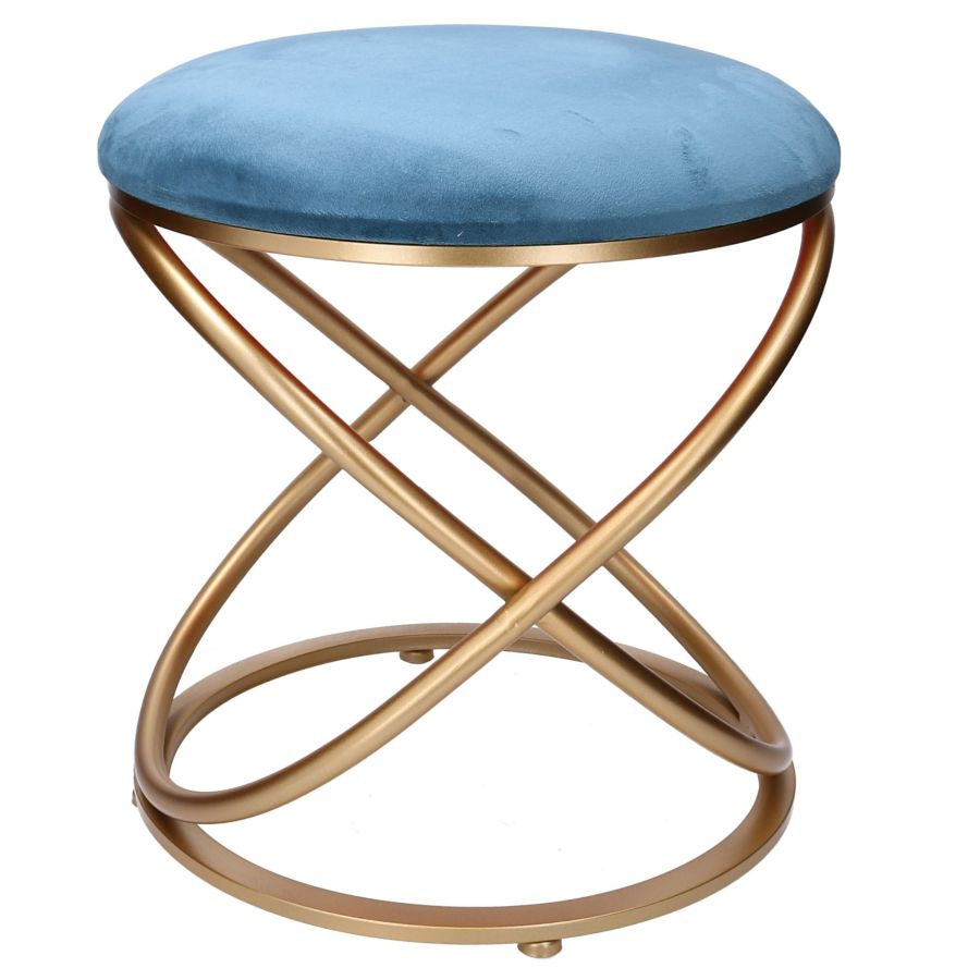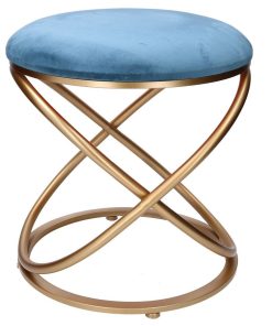 Questo pouf tondo è disegnato da linee moderne con base realizzata in metallo dorato formata da intreccio di 3 cerchi che sostengono la seduta imbottita e rivestita in tessuto effetto velluto.