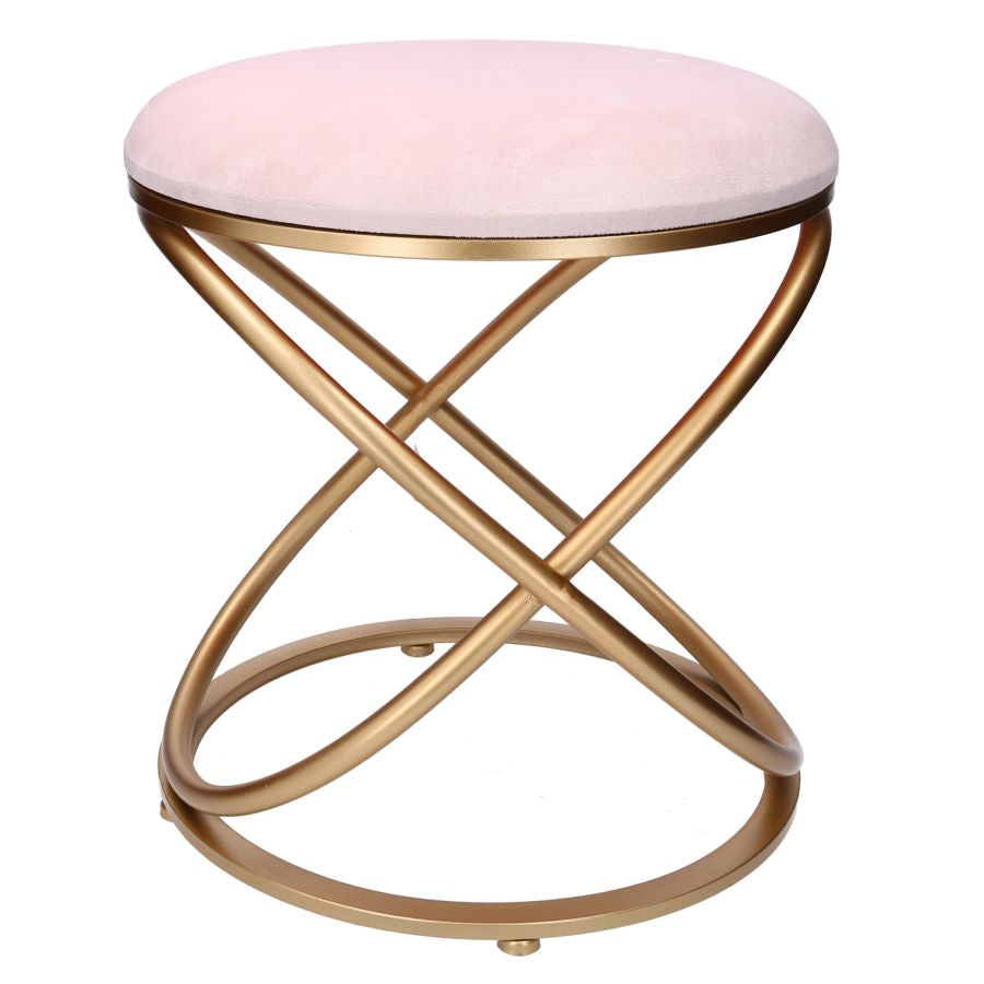 Pouf rotondo realizzato in metallo colore oro dal design essenziale ed elegante, con seduta in tessuto effetto velluto da scegliere tra 2 tonalità differenti.