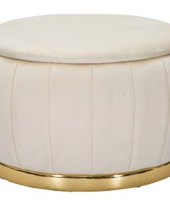 Pouf tondo contenitore in velluto base in metallo dorato cm Ø 72x43h