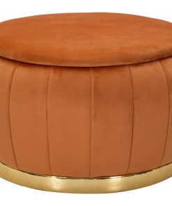 Pouf tondo contenitore in velluto base in metallo dorato cm Ø 72x43h