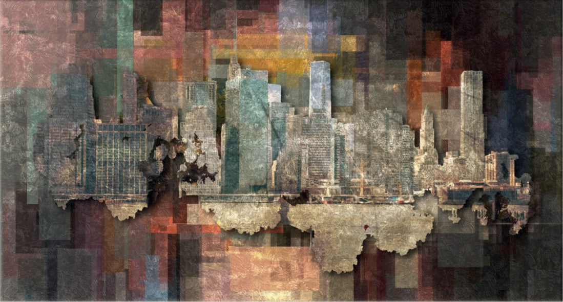 Moderno quadro a pannello realizzato in tela stampata con raffigurazione di una città con un effetto di sovrapposizione. Lo sfondo si presenta come un pannello colorato mentre la raffigurazione posta con un effetto rilievo presenta la città da una visuale lontana. Adatto ad ogni ambiente questo moderno quadro riesce a proporsi come un fantastico elemento da regalo.