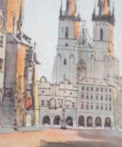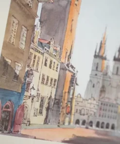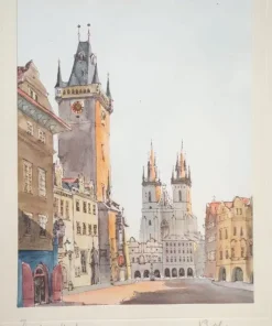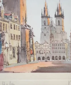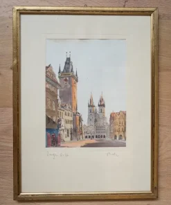 Quadro Praga, Piazza della Città Vecchia, in foglia d’oro. 1970-1980