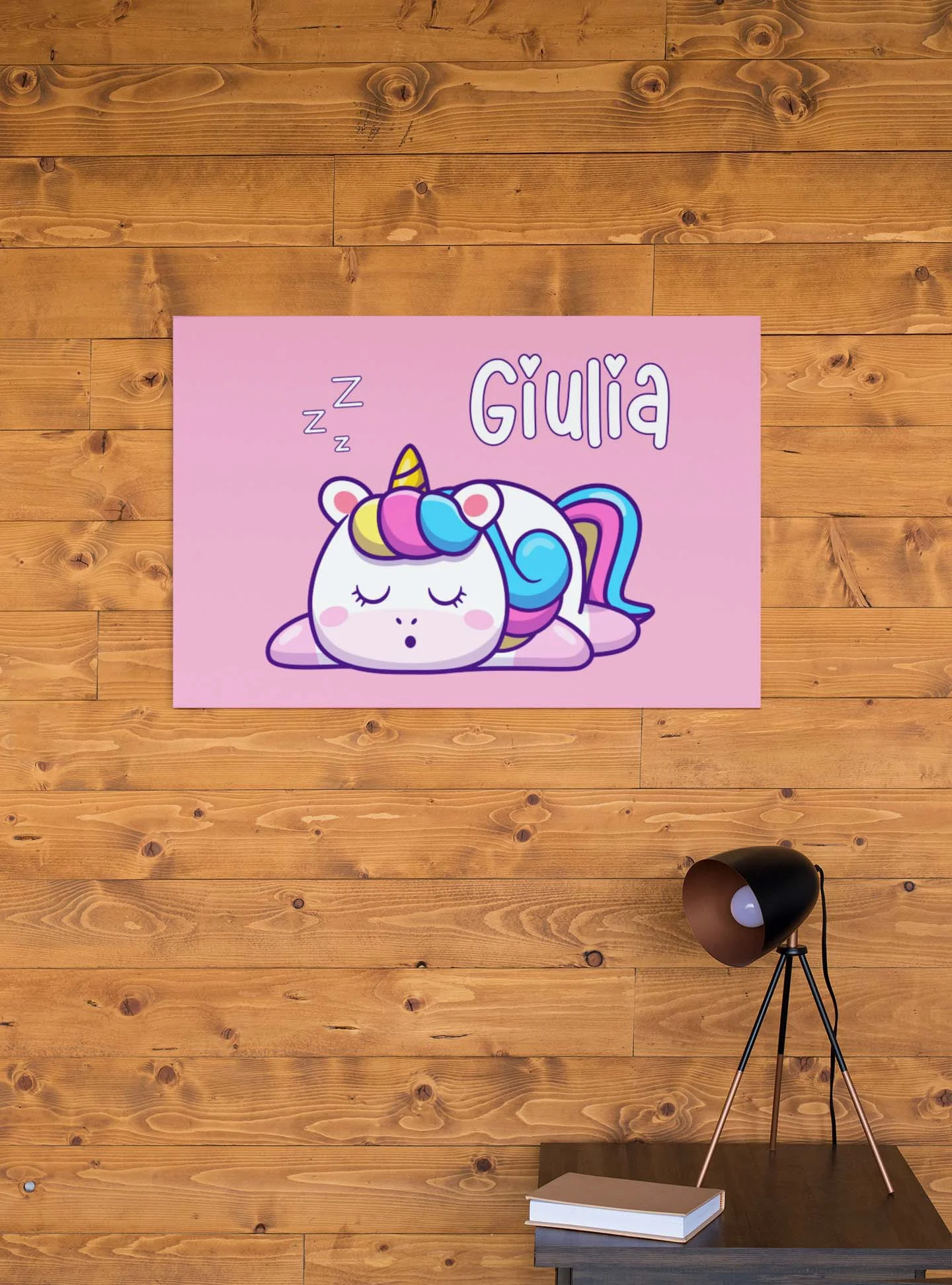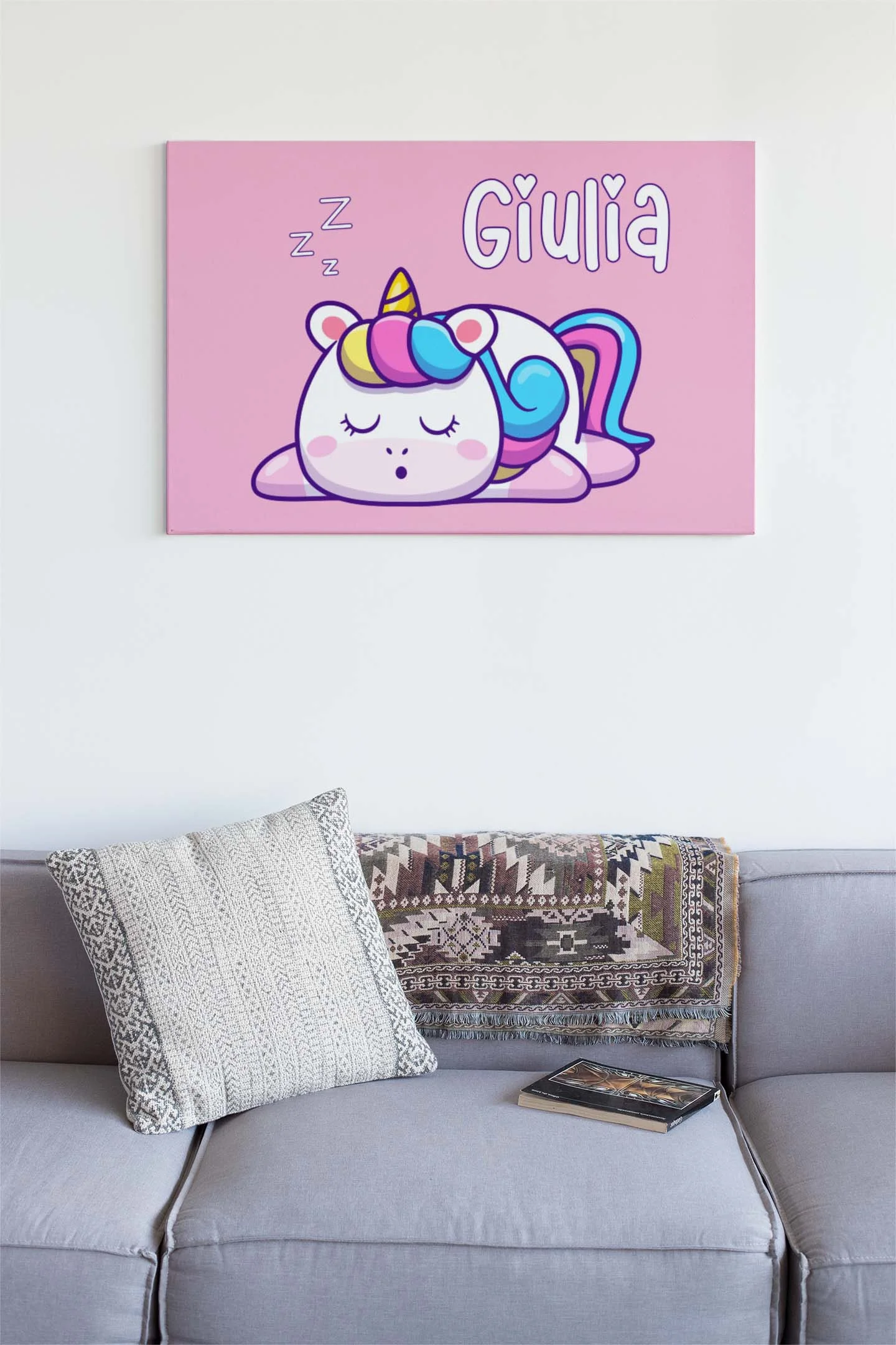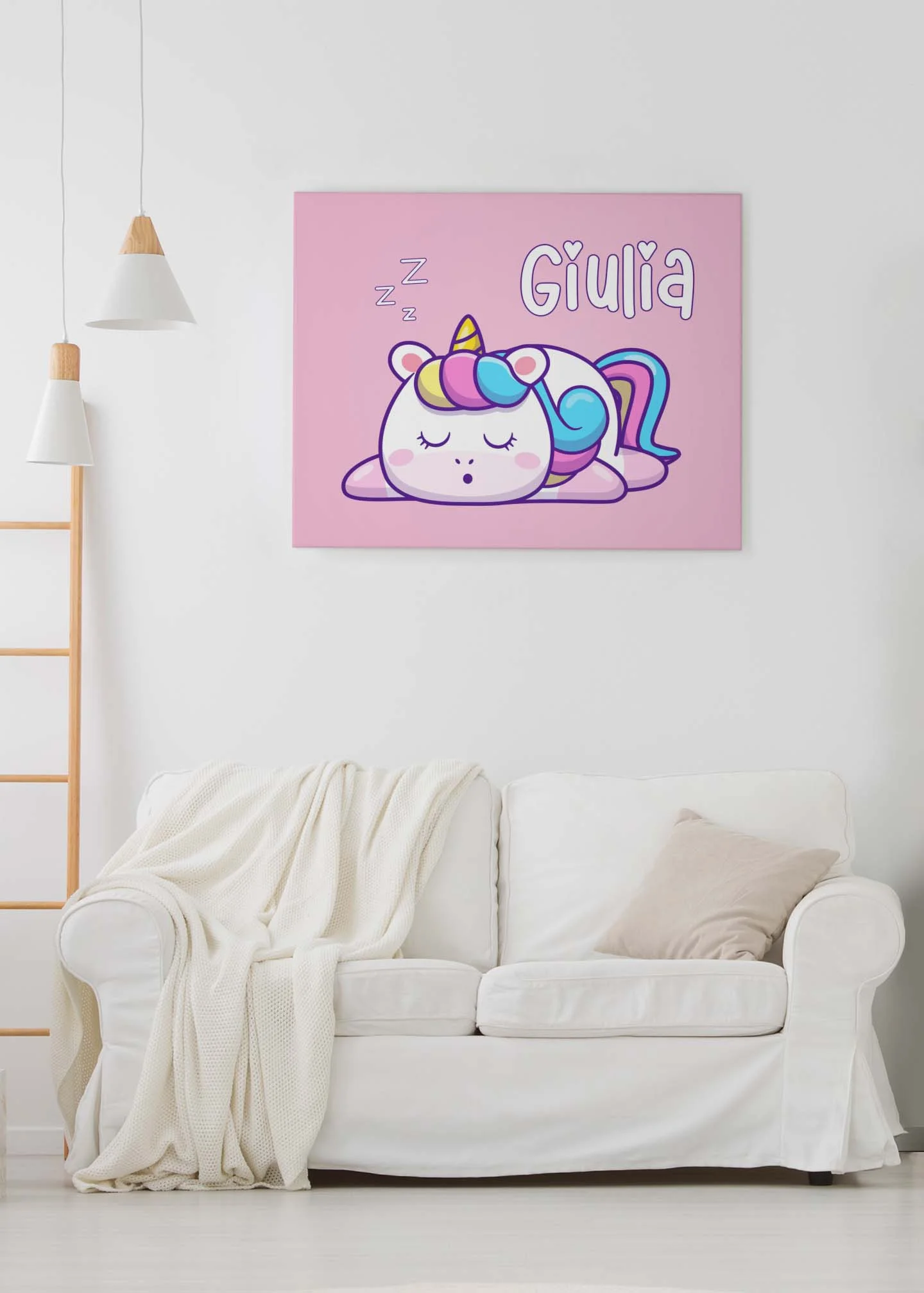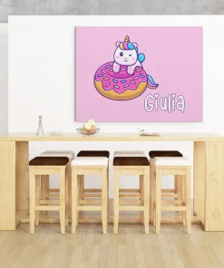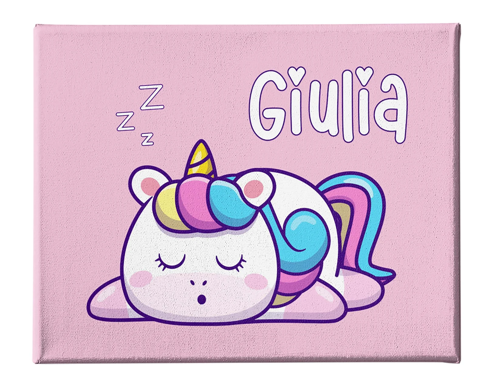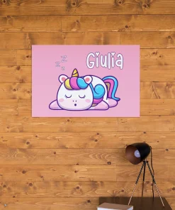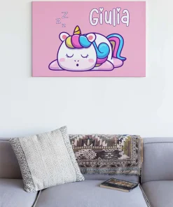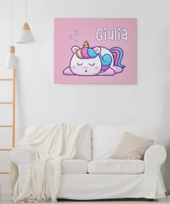 Quadro Tela Pittorica Canvas PERSONALIZZABILE col nome della tua bimba – Unicorno che dorme – Disponibile nei formati 50×70 cm e 35×50 cm