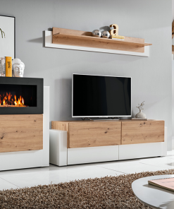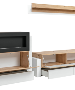 Queen – Parete attrezzata da salotto moderna con mobile tv mensola e biocamino