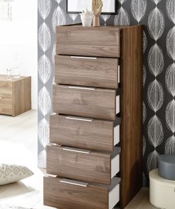 Settimino da camera dotato di 6 cassetti, un mobile fondamentale per arredare la propria stanza da letto, pensato per garantire funzionalità e uno stile che asseconda il gusto di tanti. Infatti, il legno finitura noce è la scelta più versatile, facile da abbinare e in grado di rendere più caldo ed accogliente l’ambiente.