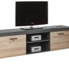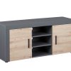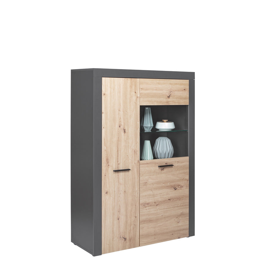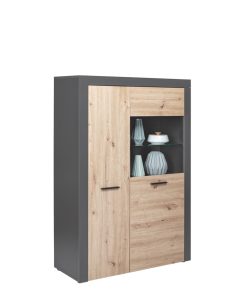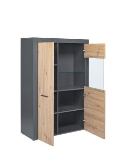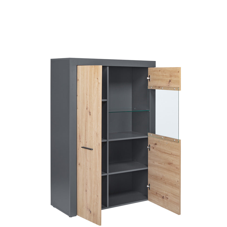 Vetrina moderna 2 ante in legno con parte vetrata finitura antracite e quercia